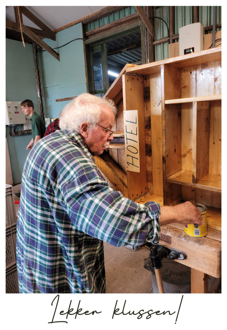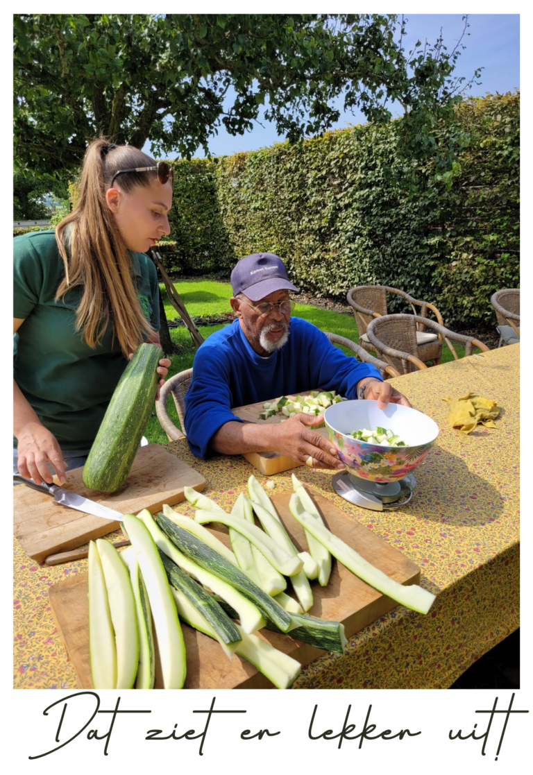 Bij Zorgboerderij ’t Radje, onder leiding van Kathalijne Kemner en Willem Koopman, beleef je een dag vol rust, ruimte en reuring. In onze kleinschalige zorgboerderij voor maximaal 12 deelnemers kun je deelnemen aan dierenverzorging, tuin- en moestuinwerk, creatieve klussen of de productie van heerlijke jam en pindakaas in onze Zelfmakerij Évlac. Onze huistuinkamer is dé plek om samen te komen voor koffie, een spelletje of gewoon even ontspannen. Alles gebeurt op jouw tempo – niets moet, alles mag. Zo wordt elke dag bij ’t Radje een persoonlijke en waardevolle ervaring.. Mensen een fijne (oude) dag bezorgen – waar kan dat beter dan op deze fantastische plek!