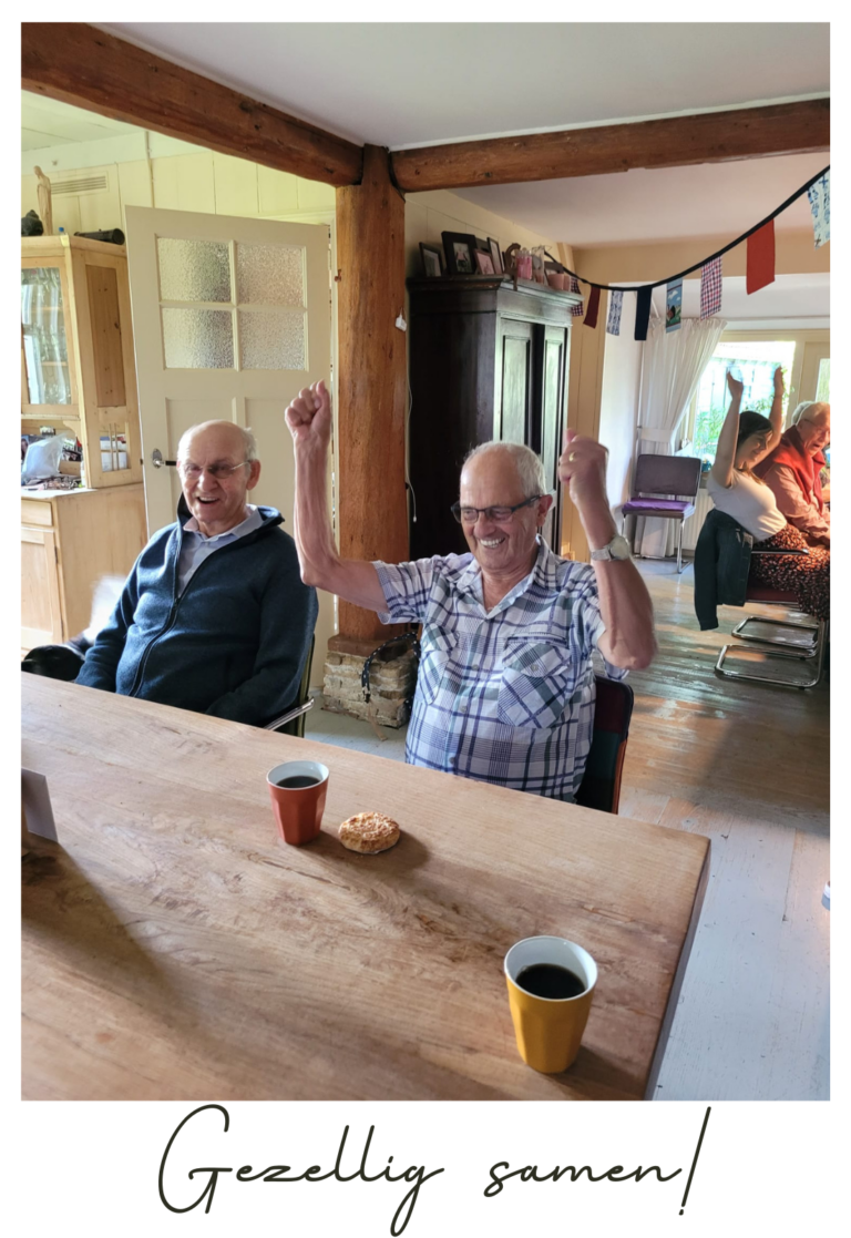 Hier ontmoeten we elkaar: we drinken koffie, lezen we de krant, spelen een spelletje, maken muziek, eten lekker of rusten even uit. Zoals het hoort in een huistuinkamer – gezellig, huiselijk en op je gemak.